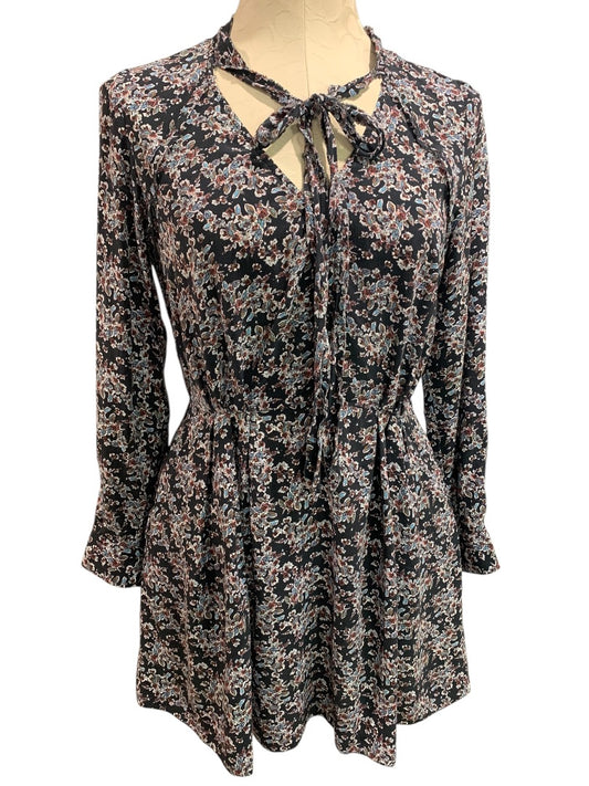 Small Dolce Vita Silk Floral Print Long Sleeve Dress V-Neck Tie Pockets
