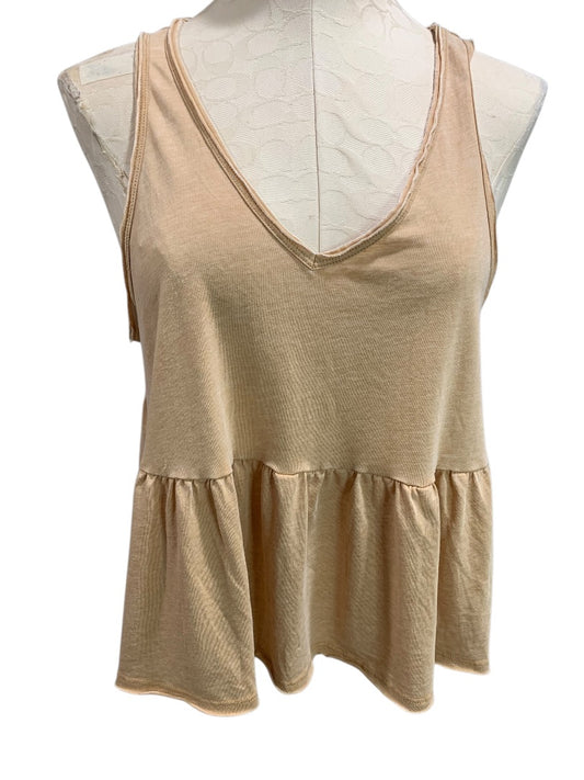 Small American Eagle Womens Tan Tank Top Flounce Hem V-Neck