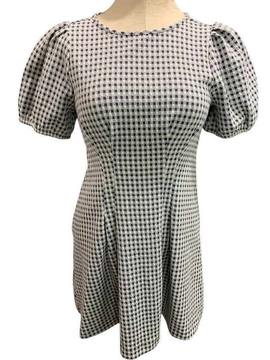 Size 4P Loft Petites Knit Dress Back Zip Gray White Gingham Check