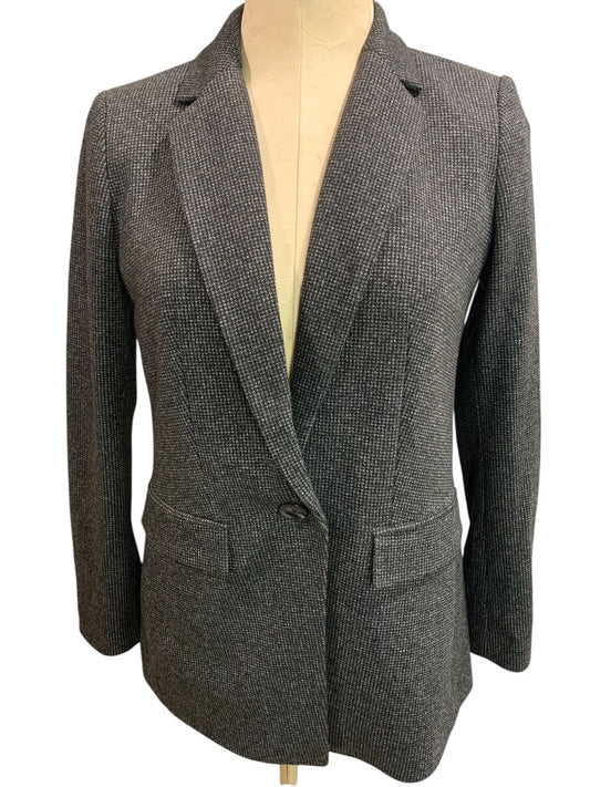 Size 2P Loft Petites Womens Microcheck Blazer Business Soft Black Gray