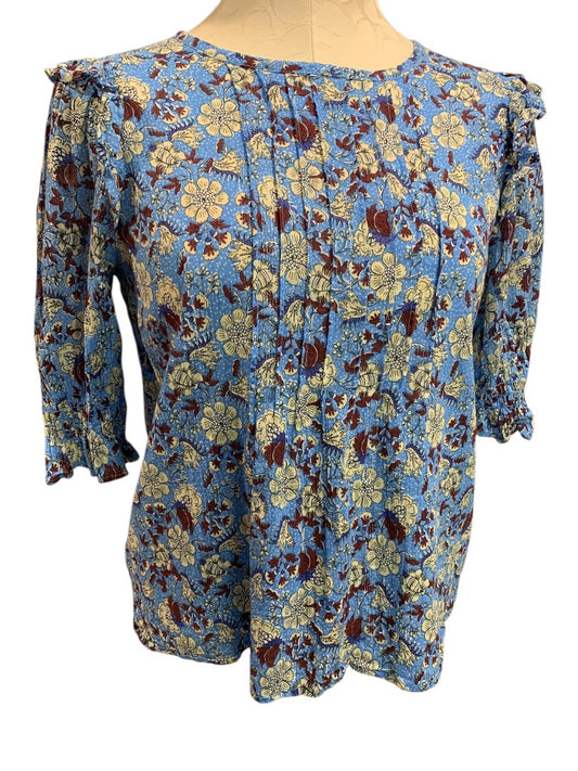 Small Petite Loft Womens Sheer Floral Metallic Threaded Half Sleeve Blouse