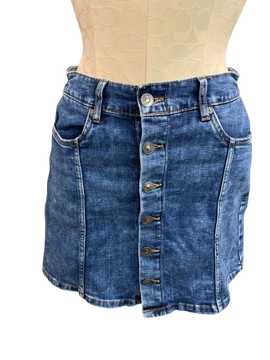 Small Aerie Jean Skirt Denim Button Front Partial Elastic Waist 16 Inch Length