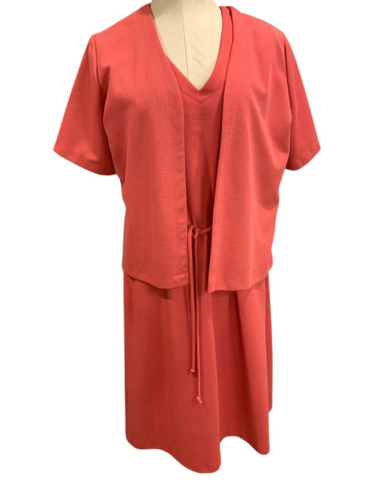 Size 18 Sears Vintage 1960s Dress and Jacket Coral V-Neck