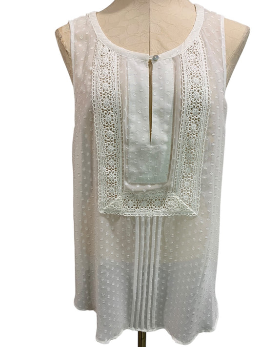 Large Black Rainn Womens Sheer White Sleeveless Blouse Lace