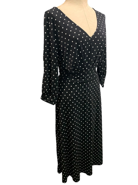 Size 14W Jessica London Stretch Dress Long Black Polka Dot Split Sleeve