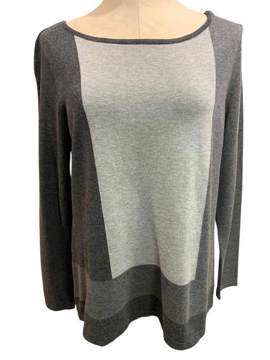 Large Charter Club Womens Gray Colorblock Sweater Long Sleeve