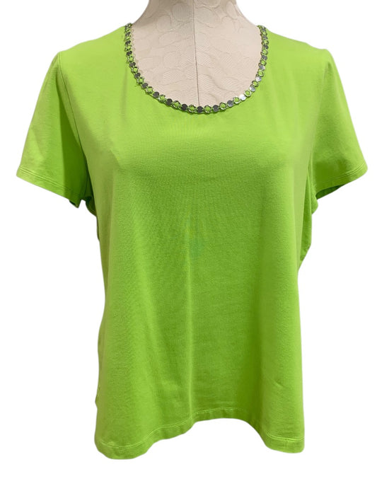 Large Laura Ashley Lime Green Womens Tshirt Embellished Neckline