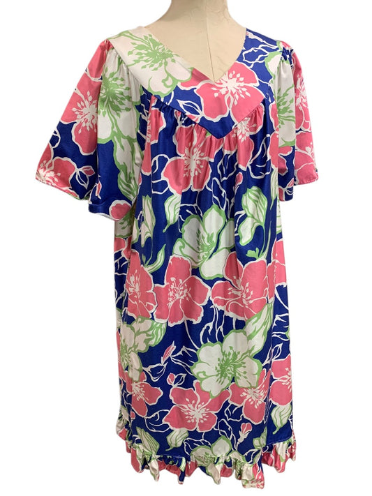 2X Sears 1970s Floral Pink Blue Dress Short Sleeve Cotton Shift