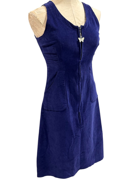 Vintage Handmade Stretch Corduroy Purple Jumper Dress Zip