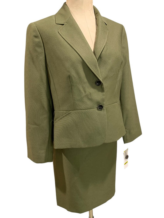 Size 14P Le Suit Petite New Womens Green Skirt Suit Jacket Blazer Olive Green