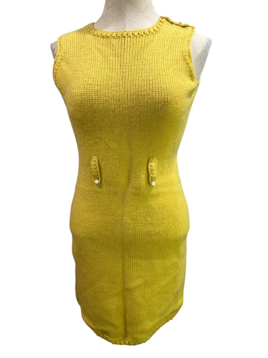 Peter Picard Womens Dress Yellow Knit Sleeveless 60s Mod Vintage USA