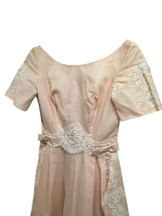Vintage Handmade Dress Pink Lace Applique Formal 50s Tea Length