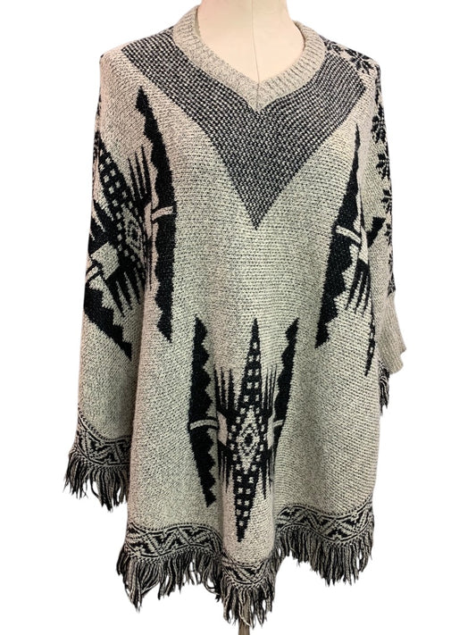 Small Medium Metric Womens Aztec Poncho Style Sweater Arms