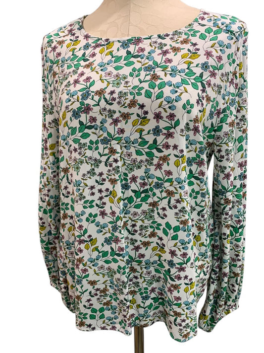 Medium LOFT Womens Popover Floral Blouse Shirt Long Sleeve