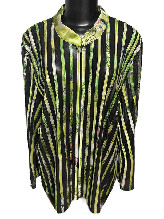 24W JS Collection Woman Striped Floral Sheer Longsleeve Zipper Shirt