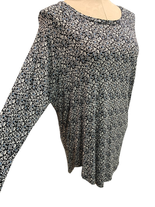 Medium LOFT Womens Soft Navy Blue Floral Print Long Sleeve Pullover Shirt