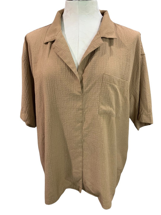 Large Calvin Klein Womens Brown Short Sleeve Button Up Shirt Blouse