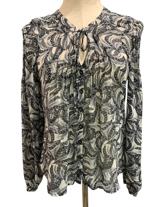 Medium Patterson J. Kincaid Womens Shirt Tie Neck Button Up Sheer Blouse