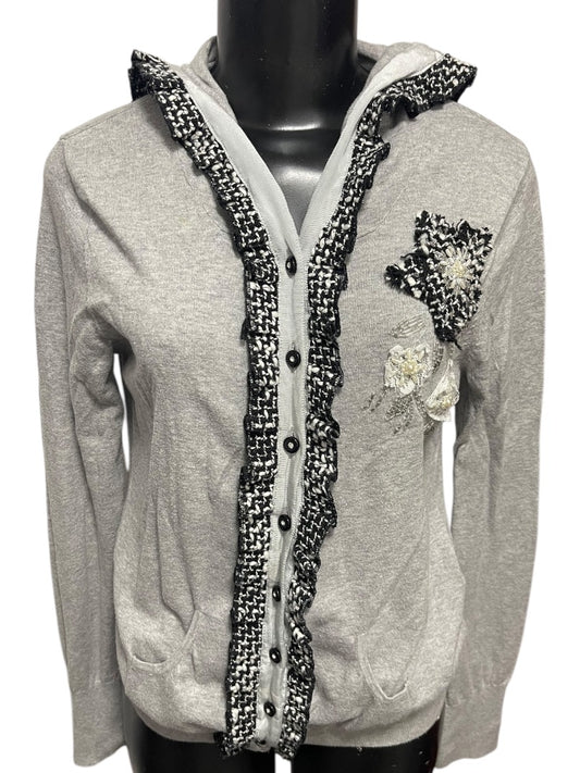 Large Charlotte Womens Gray Cardigan Sweater Hooded Cotton Rosettes