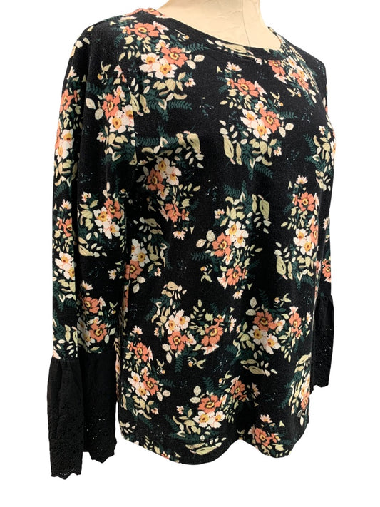 Medium Bobeau Womens Pullover Floral Shirt Eyelet Trim Sleeves