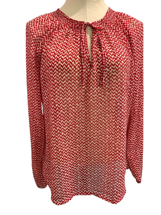 Medium Gap Womens Peasant Style Blouse Sheer Shirt Red White