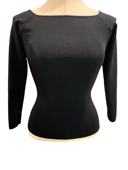 Small H&M Womens Black Fitted Wide Neck Stretch Top Shirt