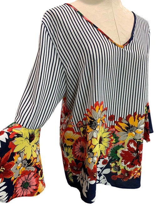 Medium Cherish Popover V-Neck Blouse Floral Striped Shirt