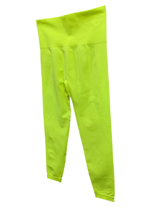 One Size DKNY Womens Ribbed Tights Leggings Crop Neon Yellow