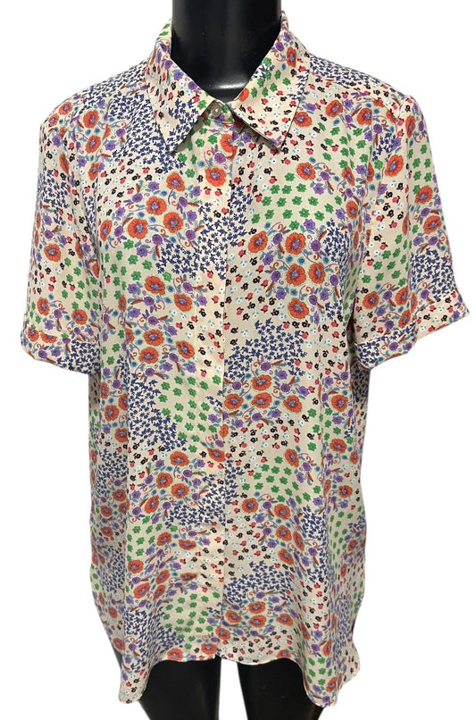 Large Rachel Zoe Womens Short Sleeve Button Up Shirt Blouse Floral