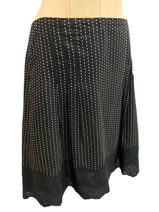 Size 6 Ann Taylor Womens A-Line Black Polka Dot Skirt Eyelet Hem