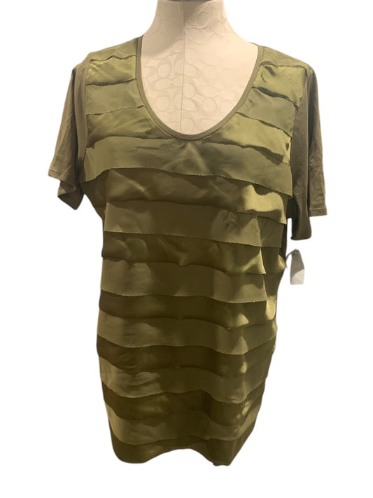 1X Preswick & Moore Womens New Satin Ruffle Front Tshirt Olive Green