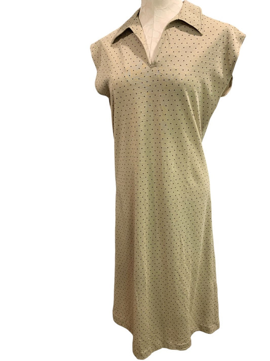 Large Kay Windsor Vintage 1970s Polyester Dress Micro Star Print Point Collar