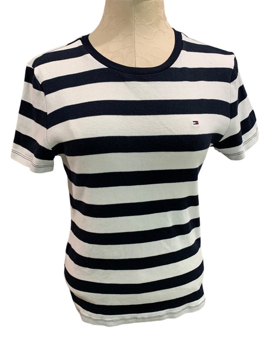 Large Tommy Hilfiger Womens Fitted Navy Blue White Striiped Tshirt