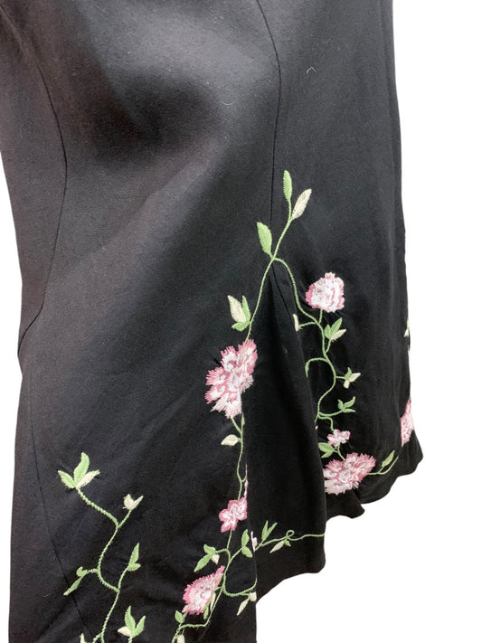 Size 16W Dressbarn Midi Skirt Black Floral Embroidery Lined Back Zipper
