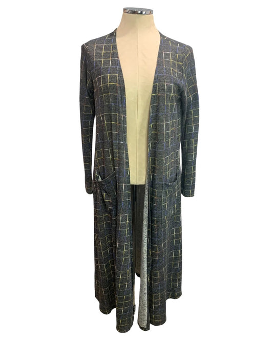 Small LulaRoe Womens Gray Jersey Knit Duster Sarah Cardigan Check Pattern Pockets