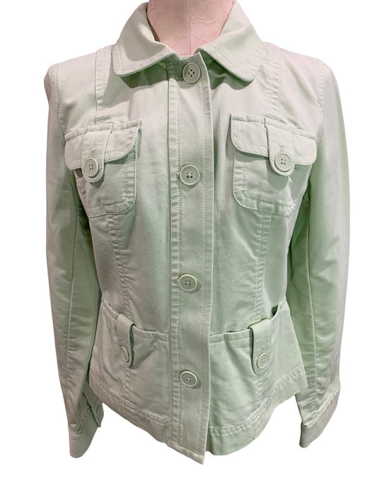 Size 8 Loft Womens Pastel Green Button Up Jacket 100% Cotton Fitted