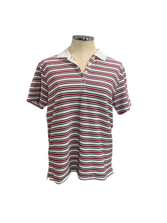Medium Hastings & Smith Red White Blue Striped Golf Polo Shirt Short Sleeves