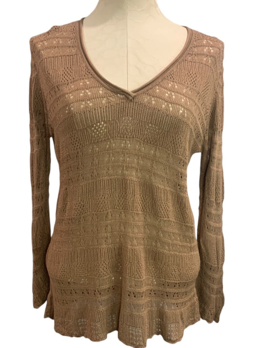 Large Joseph A. Womens Brown V-Neck Lightweight Knit Rayon Sweater Open Weave