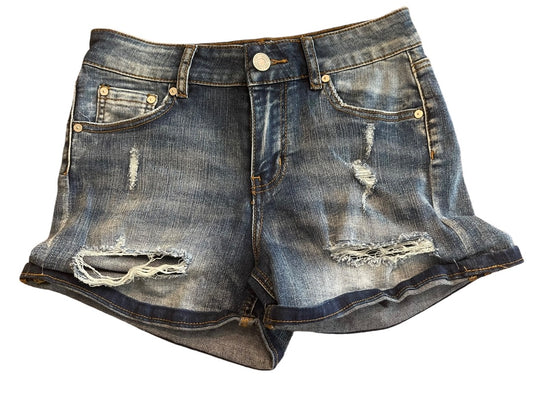 Size 5 Indigo Rein Junior Womens Denim Jean Shorts Distressed Cuffed 2.5" Inseam