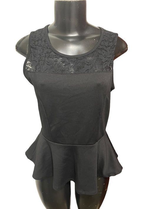 Large Ambiance Apparel Junior Womens Peplum Sleeveless Lace Yoke Top