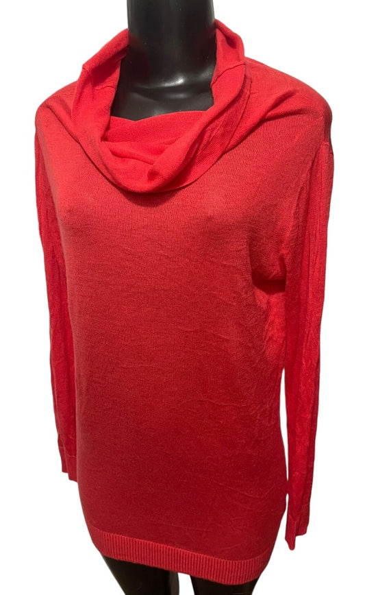 Medium Apostrophe Womens Light Red Long Sleeve Tunic Cowl Neck Sweater Lightweight
