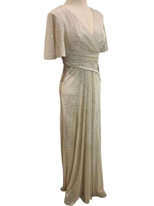 Size 2 Adrianna Papell Ablabaster Metallic Mesh Draped Gown New