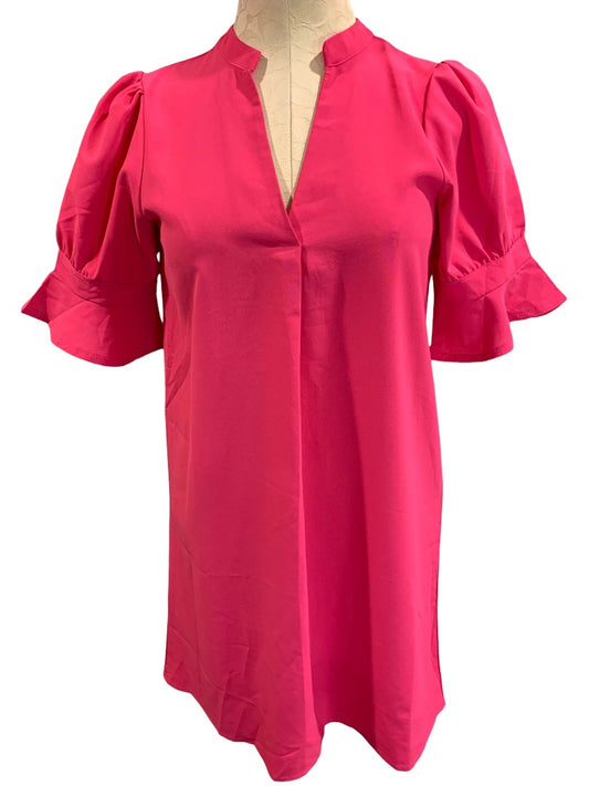 Small Hot Pink Shift Dress Ruffle Elbow Sleeve Unbranded Pullover