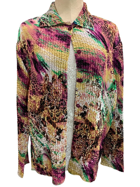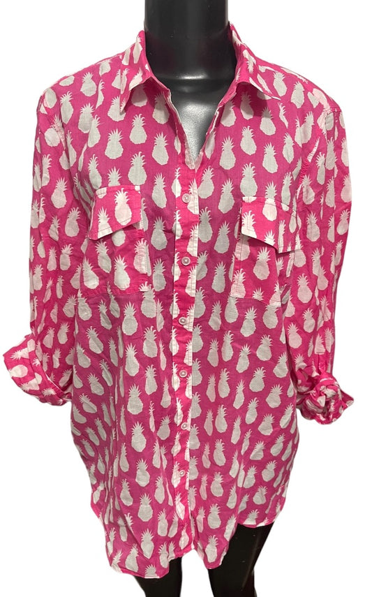 Large Talbots Womens Casual Button Down Pineapple Print Cotton Shirt Pockets