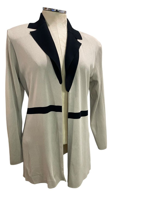 Medium exclusively Misook Tan Black Jacket Lapels Lagenlook