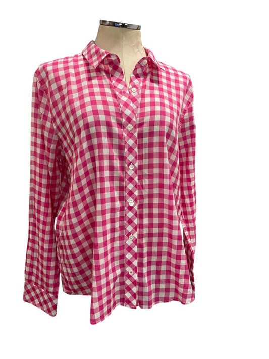 Size 12 Vineyard Vines Womens Relaxed Fit Gingham Button Up Pink White
