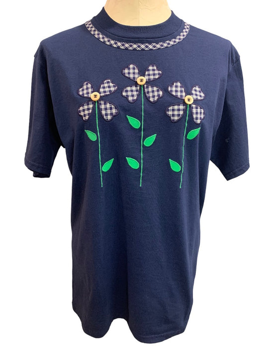 Medium Jerzees Navy Blue Women's Applique Floral Tshirt New 1990s