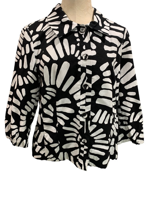 Medium Chico's Black White Pattern Women's Jacket 3/4 Sleeve Button Up