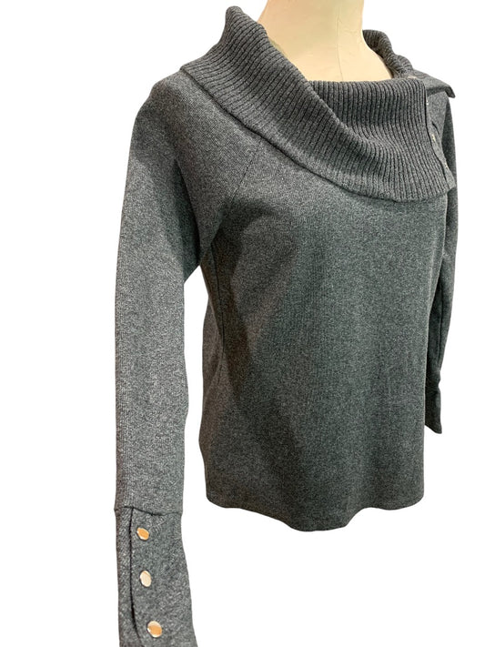 Small Petite Rafaella Charcoal Tweed Heather Pullover New Women's Sweater