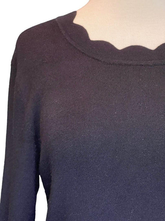 Size Small 41 Hawthorn Black Scalloped Collar Soft Sweater Lightweight